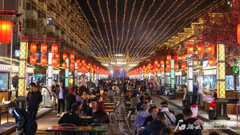 4月28日晚,乌鲁木齐高新区(新市区)温州街夜市。石榴云/新疆日报记者 谢龙摄