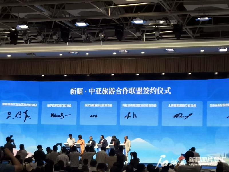 中国新疆·中亚旅游合作联盟签约。 石榴云/新疆日报记者 任江摄
