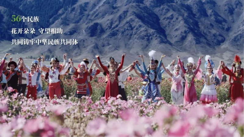 欢迎大家来到绚烂多彩的新疆,在“天山青松根连根”的团结实践中,感受新疆之“和”。56个民族56枝花,56个兄弟姐妹是一家,新疆各民族是中华民族血脉相连的家庭成员。新疆之“和”,体现在各民族多元一体、和衷共济。各民族在分布上交错杂居,经济上相互依存,文化上兼收并蓄,情感上相互亲近,形成了“你中有我、我中有你、谁也离不开谁”的格局。新疆之“和”,体现在各民族亲如一家、和谐相处。行走在新疆大地,各民族兄弟姐妹比邻而居,无论在时尚现代的乌鲁木齐,还是在风情浓郁的喀什老街;无论在人来人往的街道社区,还是在炊烟袅袅的乡镇村庄,随处可见各民族像石榴籽一样紧紧抱在一起。新疆之“和”,体现在各民族相互尊重、和睦融洽。麦西热甫、黑走马、萨吾尔登等欢快歌舞,闹元宵、那达慕、赛马会、花儿会等节日盛会,饺子、烤馕、羊肉串、熏马肉等特色美食,无不展现着浓郁浪漫的民族风情、团结凝聚的美好图景。
