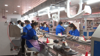 6月19日上午,记者在英吉沙工业园区新疆昆仑运动用品有限公司生产车间看到,员工们正在生产赶制将要参会的运动鞋新品,严把产品质量关,争取进一步打响企业知名度,赢得更多订单。