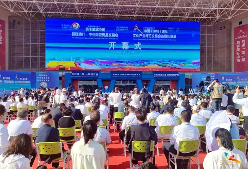 6月21日,第十三届中国新疆喀什·中亚南亚商品交易会(以下简称:第十三届“喀交会”)、“中国(深圳)国际文化产业博览交易会首届新疆展”(以下简称:文博会首届新疆展)在喀什国际会展中心盛大开幕。