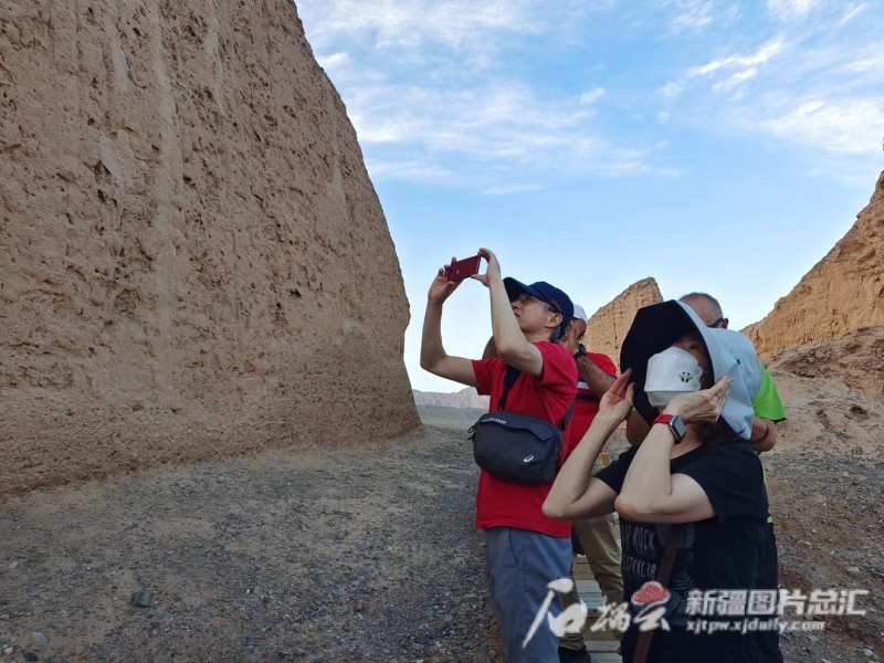 规模宏伟的高昌故城,历经岁月,仍显露出一派雄浑气象,令穿梭于其中的参访团成员深受震撼,不时拍照留念。