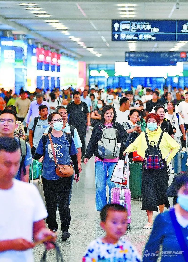 7月4日,旅客从出站通道走出乌鲁木齐站。随着旅游旺季到来,乌鲁木齐站人潮涌动,始发和终到客流均高位运行。石榴云/新疆日报记者邹懿摄