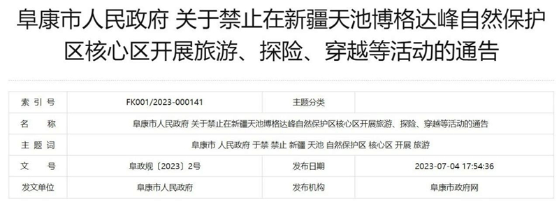 五、本通告具体事宜由新疆天池管理委员会(天池博格达峰自然保护区管理局)负责解释,有效期为3年,自公布之日起实施。