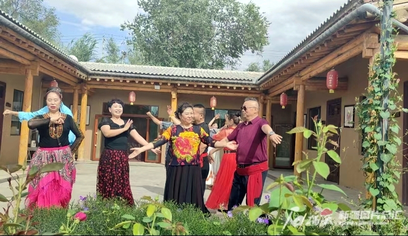 木垒县望舒园民俗客栈里,游客们一起跳舞。 刘珂 摄