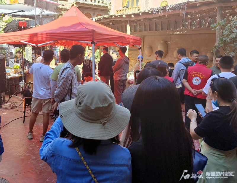 东方甄选在喀什古城景区直播被热情游客围观。石榴云/新疆日报记者 贾春霞摄