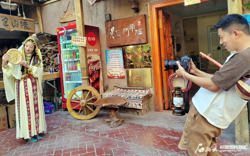 错落别致的古朴民居、代代相传的手工艺品、让人垂涎欲滴的特色美食……在喀什古城纵横交错的古街小巷上,各地游客汇聚于此,感受这座“活着的千年古城”的新魅力。穿行其中,不时会遇到摄影师带着旅拍游客,或徜徉在空中花园、彩虹巷、油画一条街等打卡点拍照,或随意在一面墙、一扇门前,拍一套旅行写真,沉醉在古城浓浓的文化氛围中。在一家旅拍店里,来自哈尔滨的游客高乐正在化妆,“去了很多地方,发现喀什古城风情万种,尤其是建筑特别有氛围感,希望在这里定格美好瞬间,留下青春记忆。”