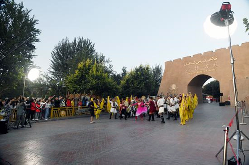 直播间隙,还有精彩的非遗歌舞表演全方位展示喀什绚烂多彩的民俗风情。孙亭文 摄