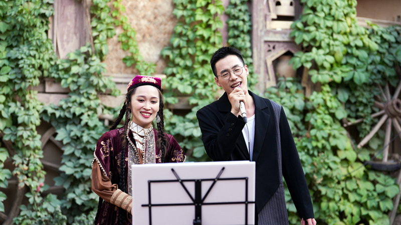作为“文化直播”特色的直播间,东方甄选特意邀请新疆本地的表演团队,为全国网友带来原汁原味的新疆风情,感受一把文化魅力。同时,东方甄选主播们也特意穿上新疆特色服饰,精心准备现场歌曲、直播介绍,用语言和歌声,向全国网友传递新疆的美好。