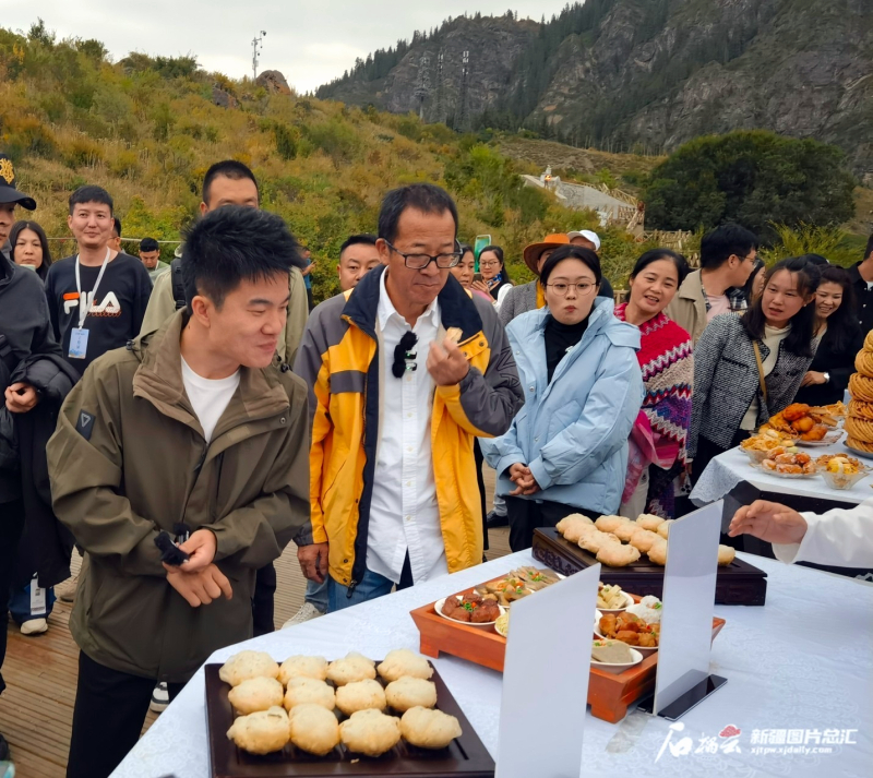 直播展示被列入非遗名录的传统美食。 石榴云/新疆日报记者 银璐摄