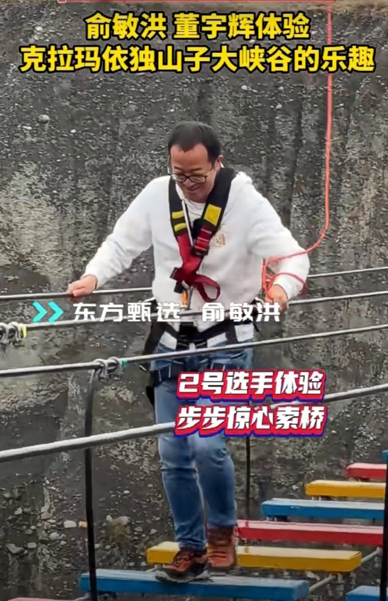 直播中俞敏洪体验独山子大峡谷索桥 视频截图