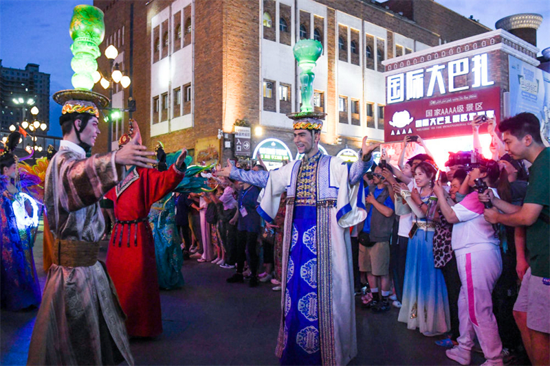 在新疆国际大巴扎演员表演节目。资料图片