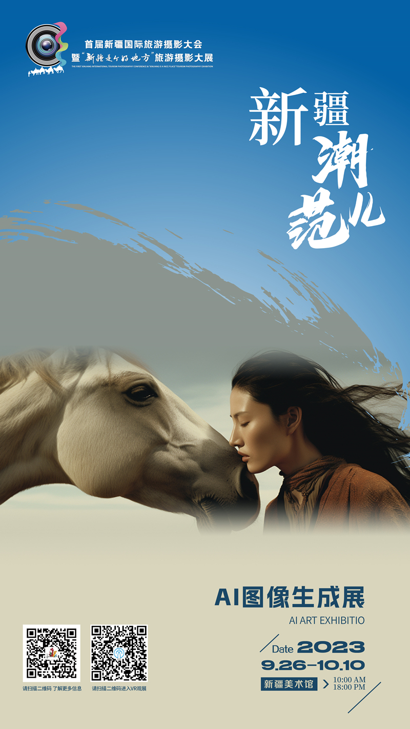 由北京服装学院时尚传播学院摄影系师生、中国AIGC产业联盟(AIGCxChina)和来自全国各地的影像创作者们联合完成的一次人工智能应用实践图像展览。年轻的学生们与业内AI图像生成的实践者、研究者,共同贡献了百余幅AI生成图片。创作团队中的一些人甚至没有到过新疆,但他们凭借着艺术的想象力和创作力,以人工智能为媒介,从多维度创作出的系列作品,不仅展现了新疆特有的风土人情、多元文化,更充满了对新疆这片土地的憧憬与热爱。