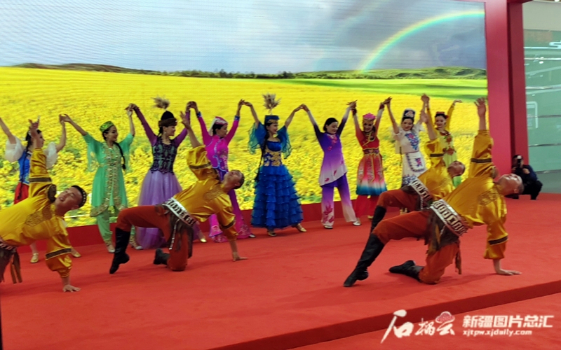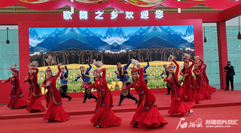 “我们新疆好地方啊,天山南北好牧场……”伴随着优美动人的经典旋律,来自伊犁哈萨克自治州的舞蹈演员们欢快地舞动起来,背景大屏是伊犁州的绝美风光。欢快动感的开场舞后,来自昌吉回族自治州、乌鲁木齐市等文艺院团的演员们,先后演绎了新疆曲子《嫦娥奔月》、舞蹈《刀郎麦西热普》、男声独唱《再唱新疆好地方》等,吸引了一拨又一拨观众驻足欣赏。