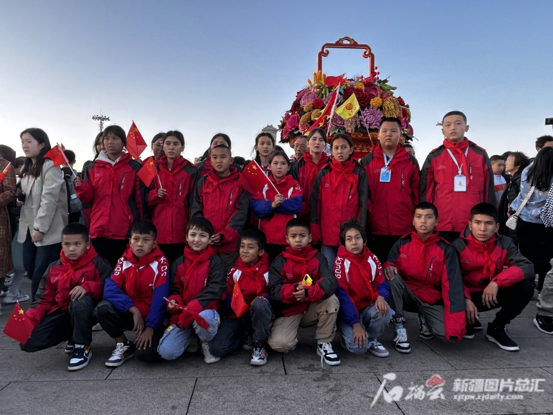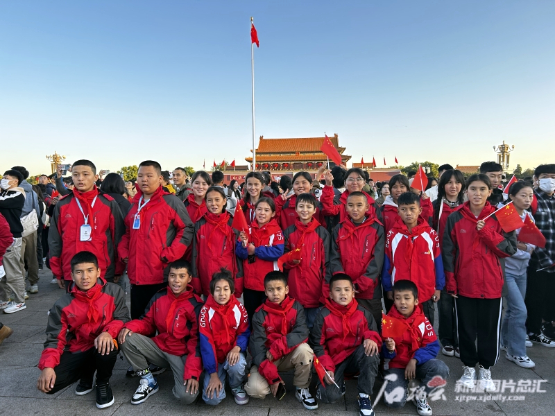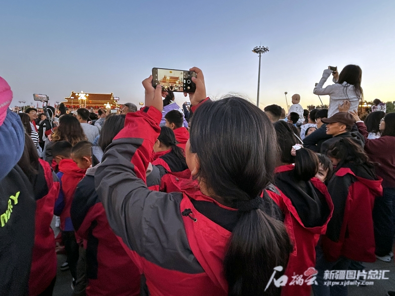 10月1日早上,同学们在天安门广场参加升旗仪式。 石榴云/新疆日报记者张小宓摄