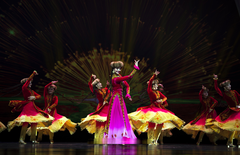 演出中,无论是体现新疆各族群众美好生活的民族民间舞《阳光下的麦盖提》,还是蒙古族英雄史诗《江格尔》、柯尔克孜族英雄史诗《玛纳斯》的片段节目,抑或是以精妙的动作和华丽的舞台表现力闻名的《龟兹乐舞》,它们在传承中华优秀传统文化的基础上进行创造性转化、创新性发展,用丰富的舞蹈语汇讲好一个个动人的新时代新疆故事。正如观看演出的香港舞蹈艺术家陈星菊评价,新疆歌舞的选材更加宽泛了,舞种更加丰富了,“以前,我们更多关注民族民间舞,这台演出让我看到了新疆的艺术家们创作领域的广泛,他们从历史文化中取材,越来越多将传统文化与现代艺术融合创新,这使舞蹈创作底蕴愈发厚重、形式更加多样。”