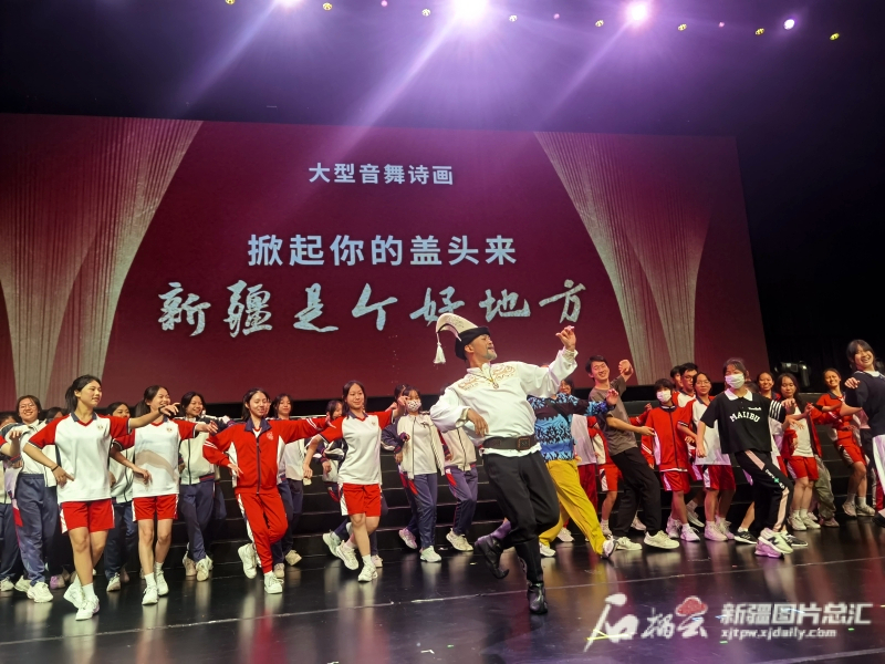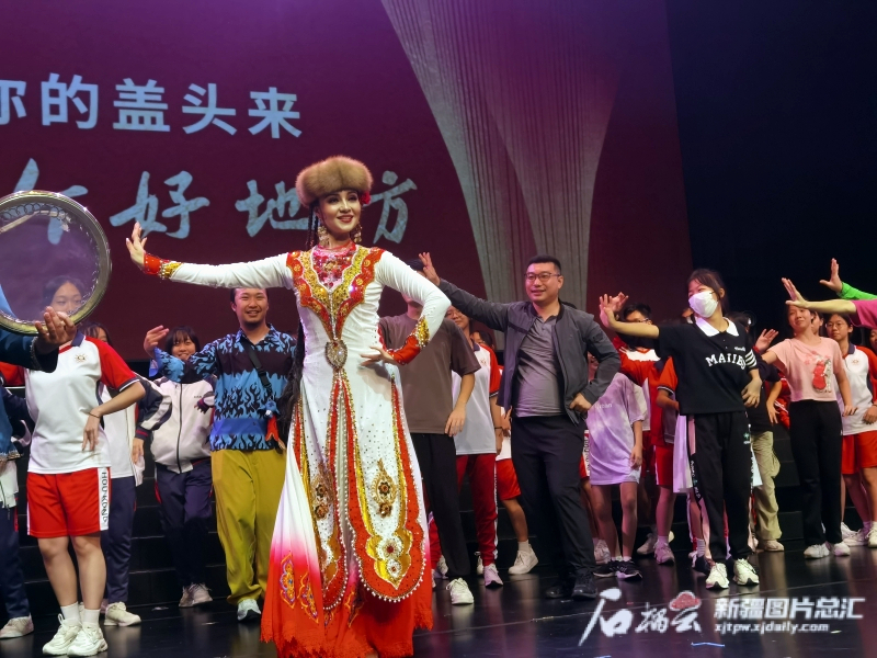 “一二三四,从左向右扭动脖子;二二三四,从上往下翻动手腕。真棒,你的动作很标准。”在新疆维吾尔木卡姆《朱拉》片段中担任领舞的马依热·艾买提江带领下,胡宇琦很快掌握了动作要领,“回去我要告诉同学们,我学到了原汁原味的新疆舞。”