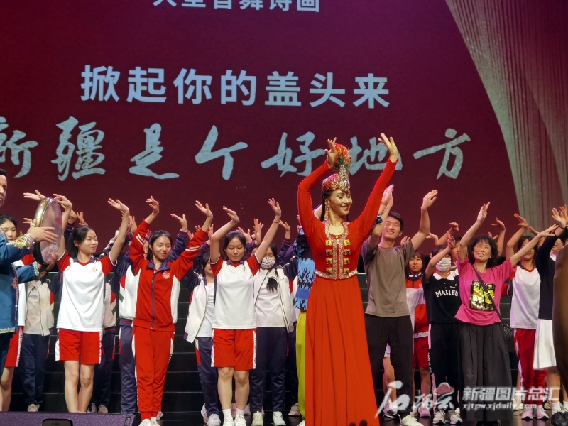 10分钟前,大型音舞诗画《掀起你的盖头来——新疆是个好地方》在这里刚刚结束最后一场演出,来自澳门坊众中学和澳门濠江中学的80名中学生沉浸在丰富多彩的民族舞蹈和音乐中,不舍离开,争着和演员们合影留念,俨然成为一群小粉丝。