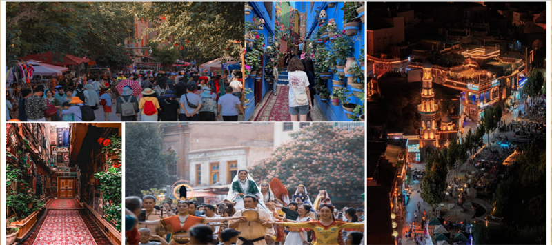 喀赞其景区依托多元一体民族文化和浓郁民俗风情资源,通过旅游发展促进了各民族在空间、文化、经济、社会、心理等方面全方位嵌入,多民族文化各美其美,美美与共,成为新时代民族团结互嵌式社区和新疆民族融合旅游的一个样板。