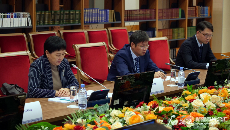 11月8日,在哈萨克斯坦国家博物馆内举行文化遗产保护利用学术交流研讨会。石榴云/新疆日报记者阿比拜摄
