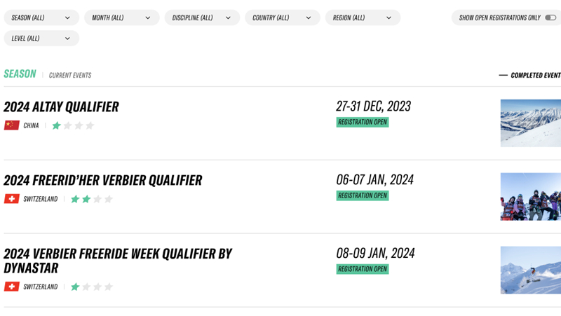 根据FWT规定,除官网报名通道外,暂不设置其它报名方式。报名通道及说明均已发布,可关注“FWT赛事服务”微信公众号点击查看文章:世界野雪巡回赛,落地中国!