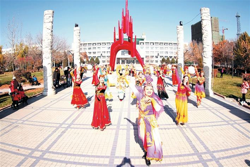居民在五家渠文化广场跳广场舞(资料图片)。 李华北 摄