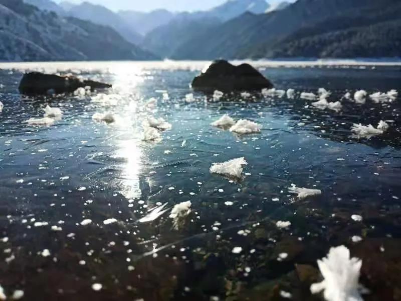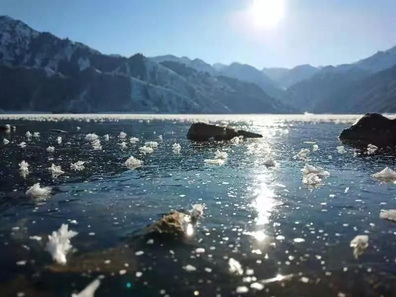 盛春来时,湖面上的冰雪开始大面积消融,零零星星的冰晶点缀在湖中。