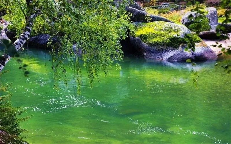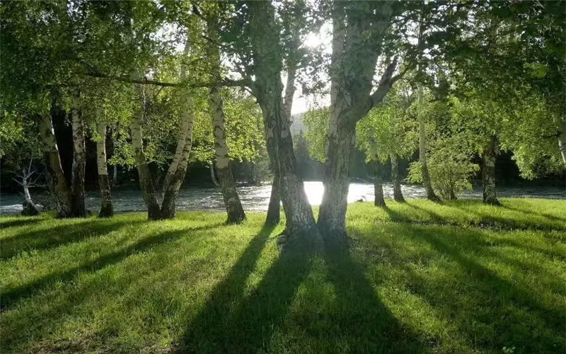 夏日里,游人们最爱可可托海的水。日光穿过在风中摇曳的树缝,闪烁于碧透的额尔齐斯河上,折射出梦幻般的色彩。