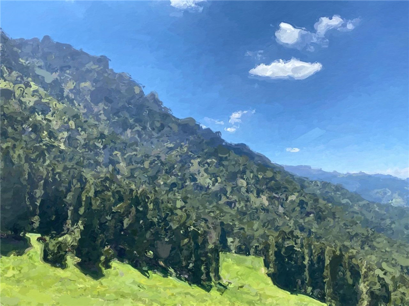 青山绿树构成一幅靓丽的油画