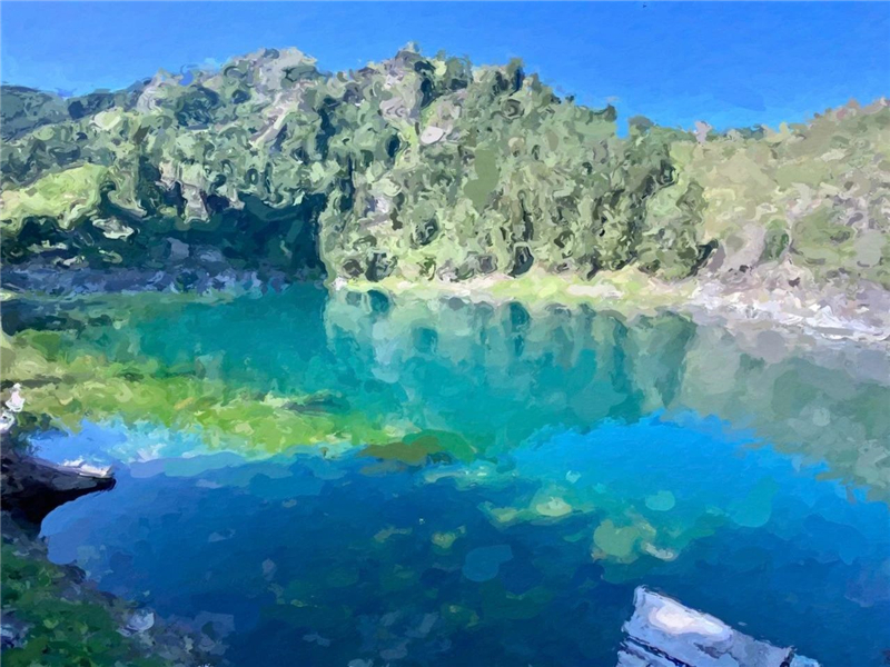 水是一片浓稠的碧色