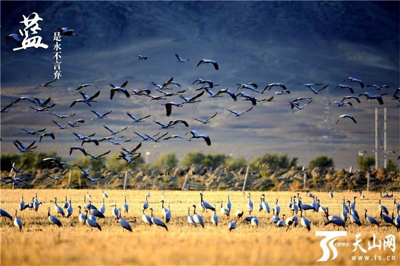 吉木乃县恰勒什海乡麦田迎来大批灰鹤