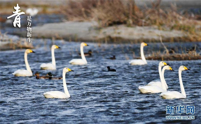 迁徙的候鸟会在乌伦古湖国家湿地公园停留,