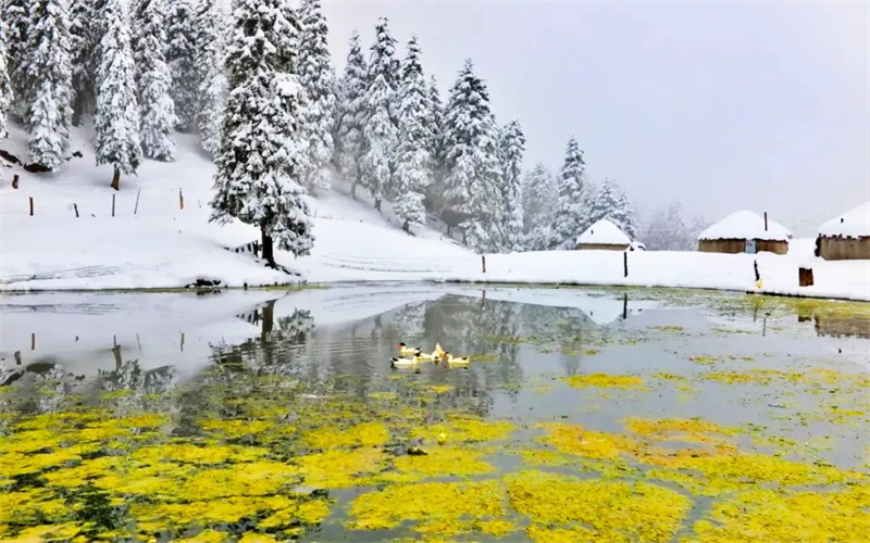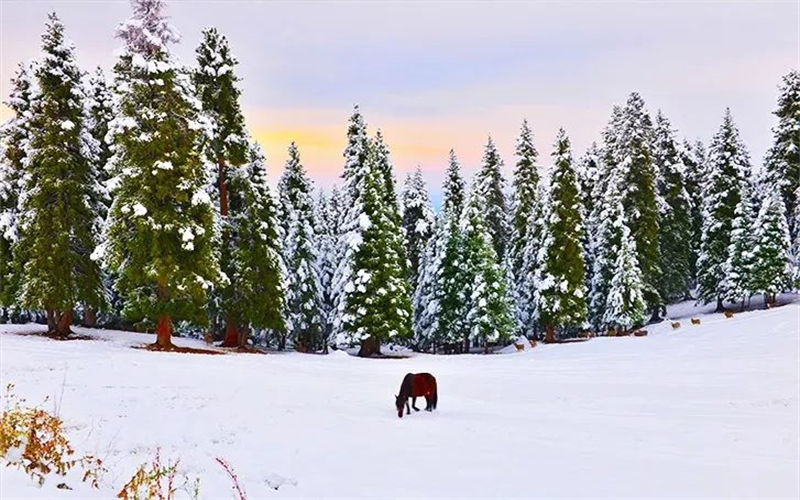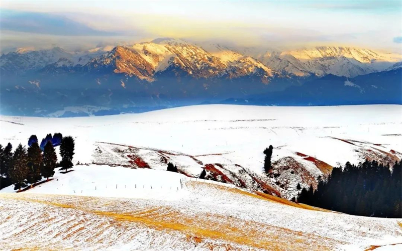 11月下旬,位于新疆昌吉回族自治州奇台县半截沟镇南部山区的江布拉克景区,万亩旱田披上银装,变身“万亩雪田”。走进冬日的江布拉克景区,蓝天、白云、雪松、麦田与远处的雪山遥相辉映,宛如走进梦幻般的童话世界。