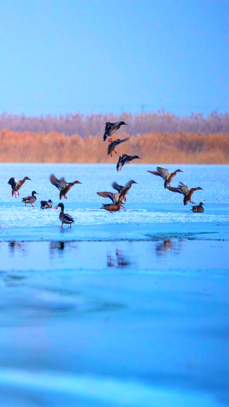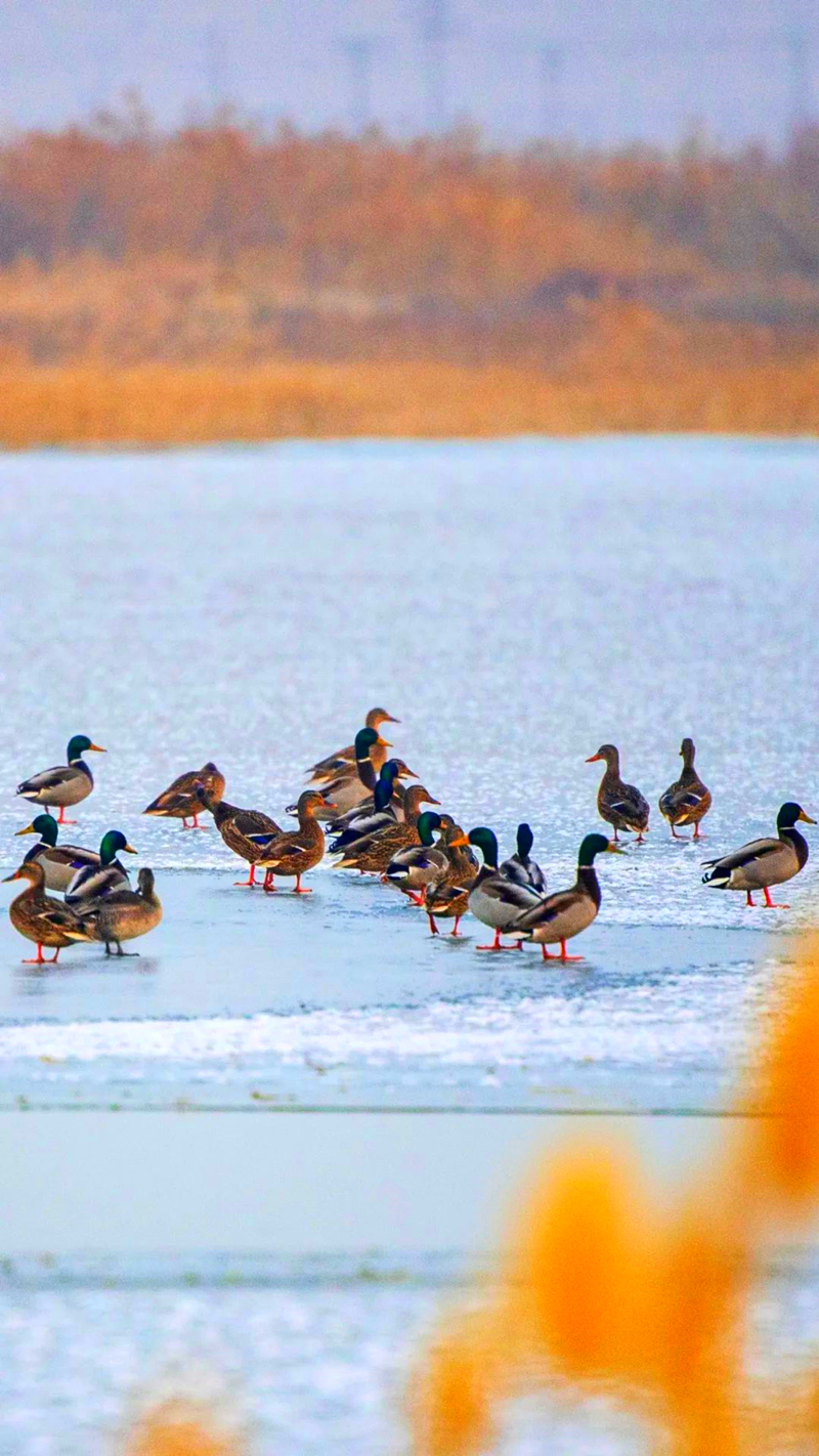 一群迁徙路过此地的绿头鸭