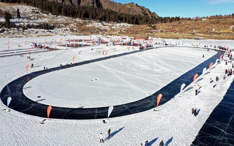 1月16日,天山天池举办“迎冬奥 贺新春 过大年”冰雪风情节,利用冰封的湖面打造了狗拉雪橇、冰上碰碰车、冰上龙舟等18项冰雪项目,进一步激发游客参与冰雪运动的乐趣,为冬奥助力。