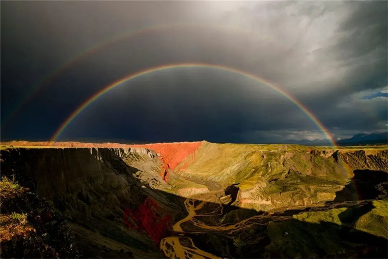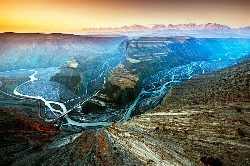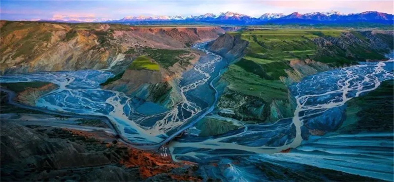 大峡谷沟壑纵横,两壁似刀砍斧凿,近乎垂直,若万佛朝宗,若万马奔腾。整个峡谷,大气如泼墨挥洒,肆意汪洋,气势恢宏。雪山、峡谷、草场、流水相辉相映。