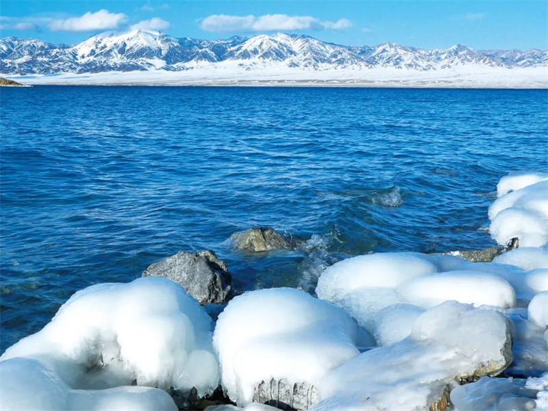 在蓝冰的加持下,赛里木湖变成了童话世界