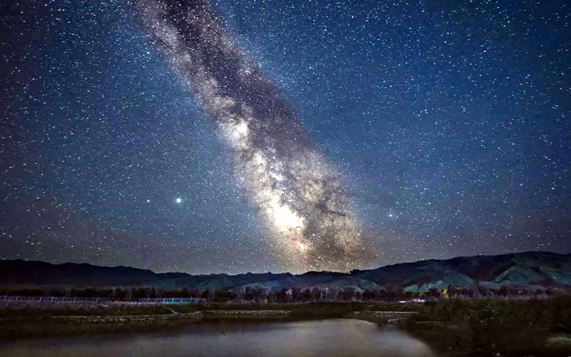 雪后云开雾散,银河浩瀚,星空浪漫,这是我所见过的最灿烂的银河,按下快门拍下那拉提蓝色调的星轨,星空银河,在那拉提绘出一幅幅星空绚丽画卷。