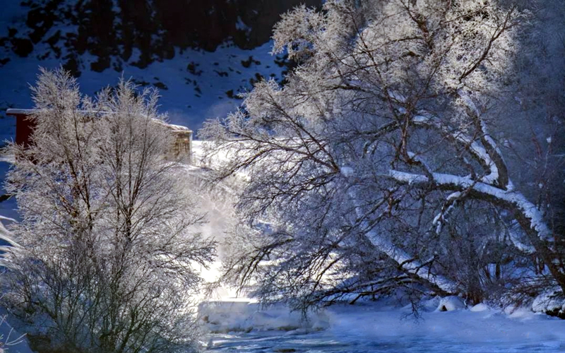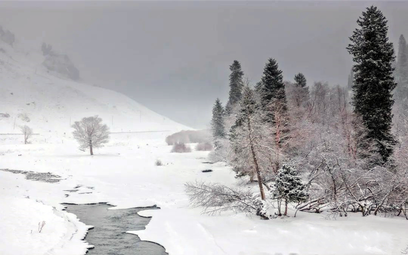雪是冬天的使者,洁白的象征,它以自己独有的身姿装点着大地,从天空中纷纷扬扬的飘落,把美丽的那拉提装点得“银装素裹,分外妖娆”。