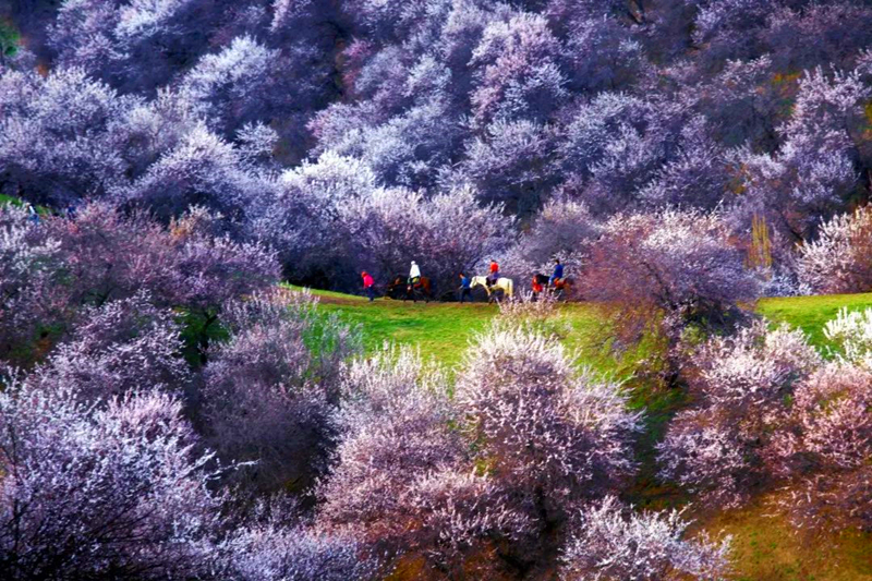 杏花十里,春光乍泄,那最高饱和度的粉,便是那拉提最美的春天。