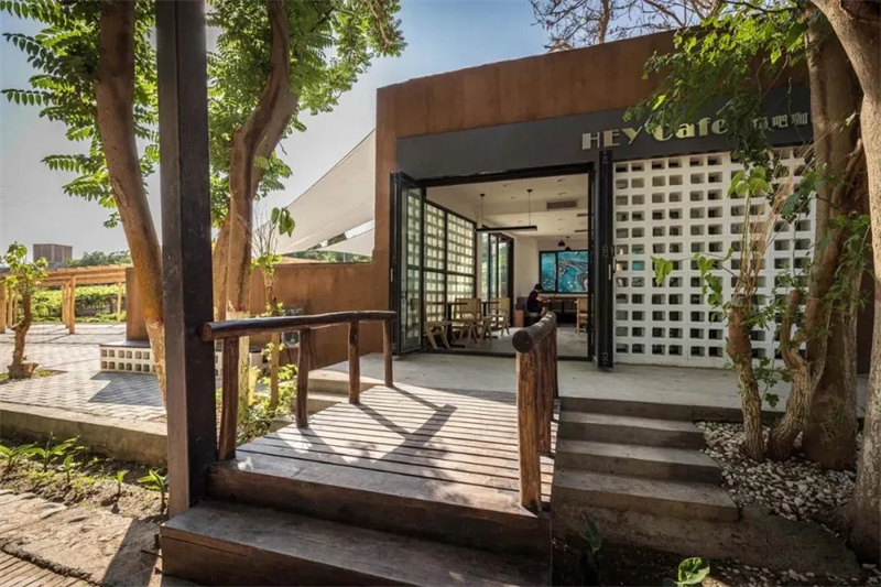 酒桶屋围绕水景休闲区,镶嵌于绿树花丛中