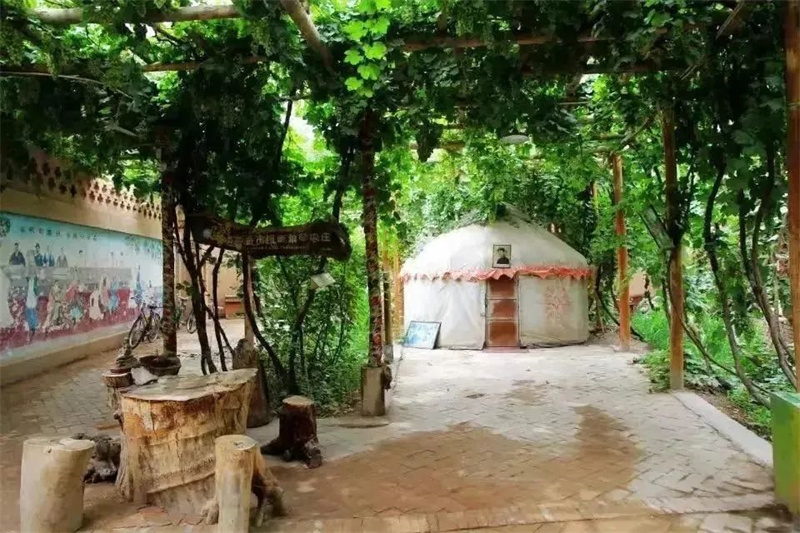 院内院外都有百年桑树,院内有4条葡萄长廊,在葡萄树下喝茶、吃饭、发呆,去周围大片的葡萄地,尽情采摘,让你在这里感受香甜的吐鲁番。