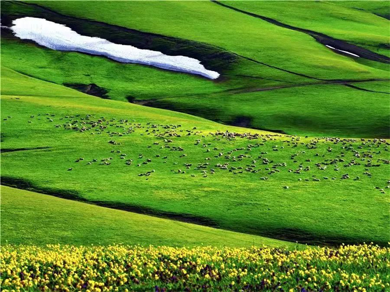 塔尔巴哈台山位于塔城市以北,又称“北山”,是塔城市优良的夏牧场。这里空气质量优良,沁人心脾;野花漫山遍野,绚丽多彩。