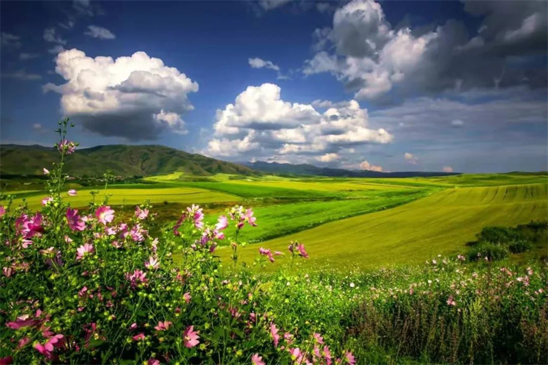 赏花亮点:塔尔巴哈台山脚草原上鸢尾花、黄花红景天、大花耧斗菜等各种野花竞相开放,绚丽夺目,这里是花的海洋,让人流连忘返。