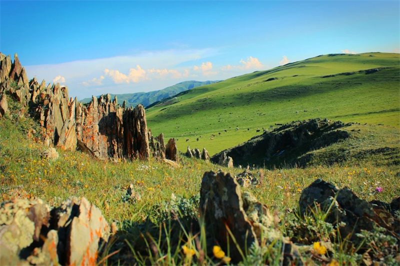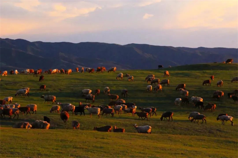 塔尔巴哈台山周边大部分是草场,主要有苔草、禾草、蒿草、野蔷薇等,蓄草丰富。春夏,牧民就会赶着成群的牛羊来到这里,所以这里也是塔城优良的夏牧场。