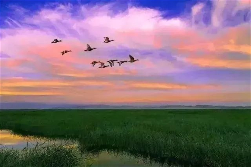 千泉湖地处沙湾市城北24公里,天山山脉为它提供了丰富的地下水水源。千泉湖是一块典型的天然湿地,湖边一望无际的芦苇丛中,有大小泉眼三千多个,这些泉眼大的有七八十平米,小的如若针尖,泉泉相连。万亩水波芦苇成帐,水道纵横。