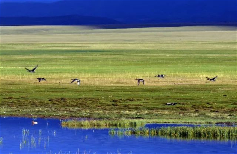 湖水清澈见底,纯净无污染。湖区周围环状分布着芦苇,次森林、天然草场等各类植被。湖内水族繁多,天鹅、灰鹤、白鹤、鸬鹚等多种珍禽水鸟在芦苇荡中繁衍生息。