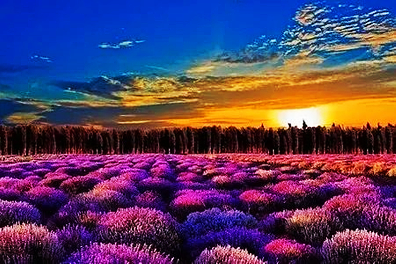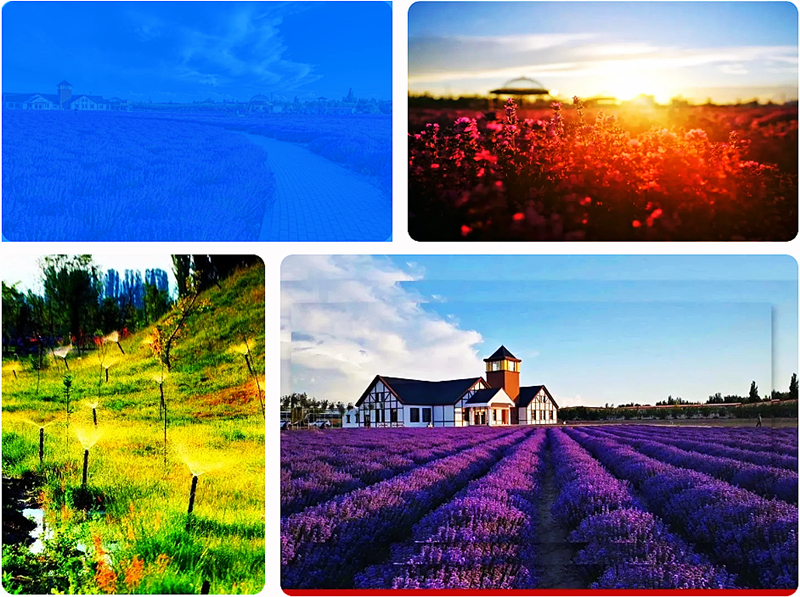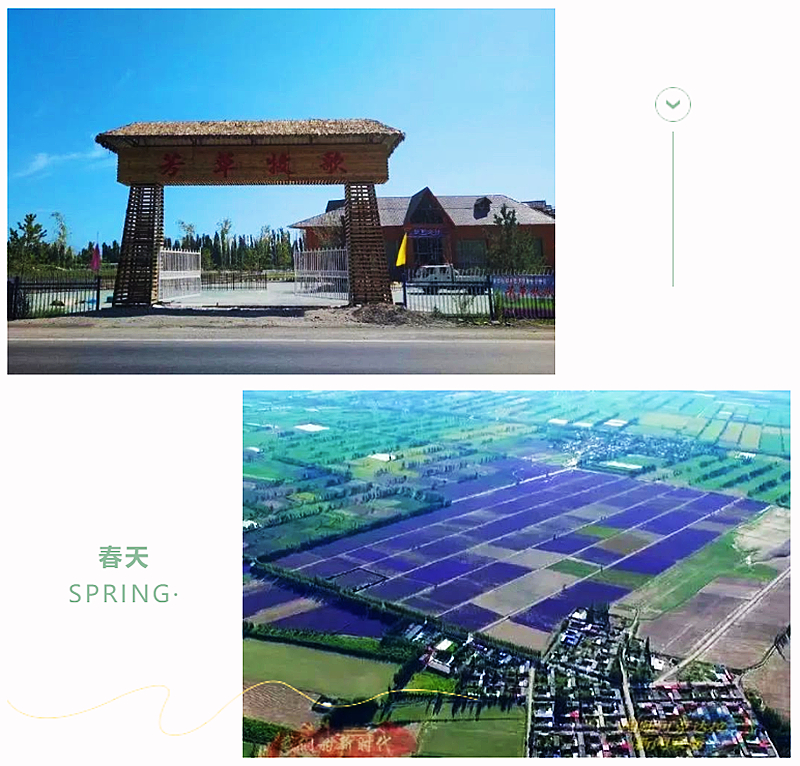 这里良田肥沃、水草丰美、景观多样,“风吹草低现牛羊,白云生处有人家,雍容紫彩最多情,醉人掀起千层浪”。景区占地500亩,主要景观是由薰衣草和马鞭草构成的紫色花海,整体风格浪漫时尚、匠心独运。