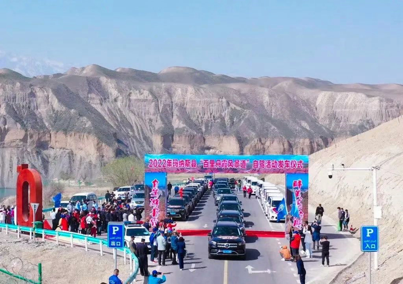4月23日,在风景如画的玛纳斯县肯斯瓦特水库隆重举行了2022年玛纳斯县“百里丹霞风景道”自驾活动发车仪式。本次发车仪式的顺利举办,为“五一黄金周”拉开了自驾游“百里丹霞风景道”的序幕,也标志着疆内自驾游又一火爆线路的成功推出,活动也将进一步推动S101天山地理画廊“百里丹霞风景道”沿线的资源融合、业态延展与产品创新。
