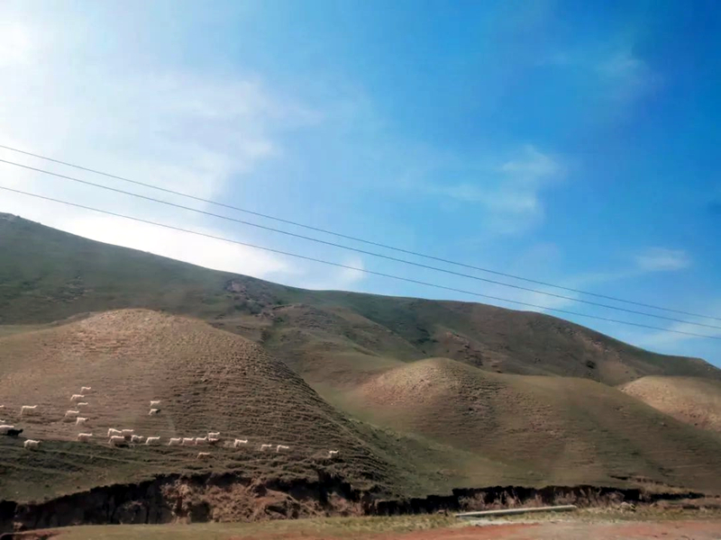 远处的牛羊,马儿在山坡上悠闲自在